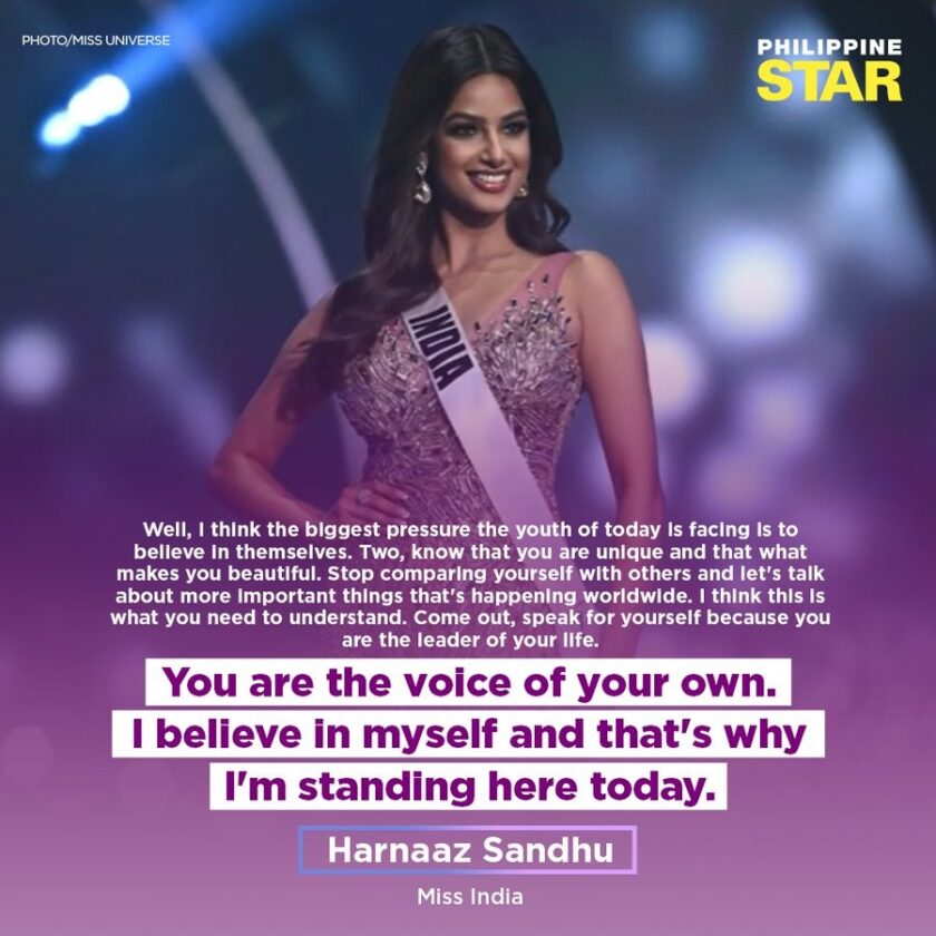 De 21-jarige Harnaaz Sandhu kreeg het prestigieuze kroontje uit handen van Miss Universe 2020, de Mexicaanse Andrea Mea. De Indiase werd op het podium vergezeld door Miss Paraguay Nadia Ferreira en Miss Zuid-Afrika Lalela Mswane.